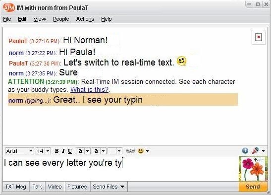 AIM’s newer version 5.0.5 includes a completely revamped user-interface, new buddy lists, group messaging, in-line photos and videos. It also has improved its file sharing which was in need of a makeover. It also features more ingrained social media aspects including Facebook and Twitter. You can also send voice messages up to 1 minute in length which can be a lot more direct than trying to IM instructions. If you have AIM 6.8 or higher you will get to experience the new feature of real-time IM. This feature allows you to see what the other person is typing while it is being written. It also provides visually impaired users the text to speech method. AIM does not require approval from one buddy to be added to another buddy’s list. This means that other users can have unauthorized users on their buddy list reading their posts, status and see when they are online. You can block these unwanted buddy’s, but this does not prevent the user from creating another unsuspecting account. There are additional privacy options which you can select by selecting the menu option to only allow communication with those on your buddy list. You canuse Facebook to sign in to AIM messaging service. You must take into consideration though that this allows access to your photos, videos, friend’s lists and messages.