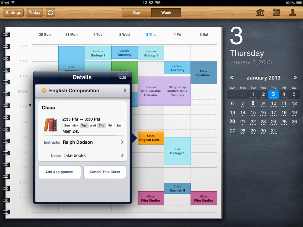 iStudiez Pro is a very useful educational application that helps students become organized and focused. All you have to do is fill out class names and times and iStudiez Pro will notify you when assignments and tests are due with a few clicks. This does take some basic effort on behalf of the student, but it operates itself as an interactive online day timer. This application costs $2.99, but is worth it in the long run because you will never forget about an assignment or test. It is available for iPhone, IPod and iTouch.